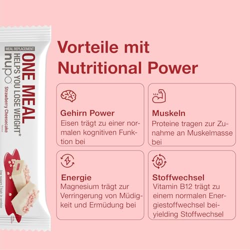 NUPO One Meal Bar – Strawberry Cheesecake I Tasty meal replacement bars for a balanced diet plan I Helps you lose weight I High in protein I 24 vitamins and minerals I 15 x 60g