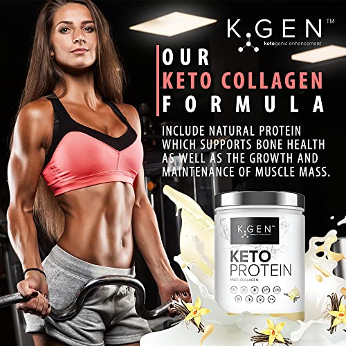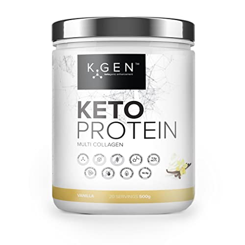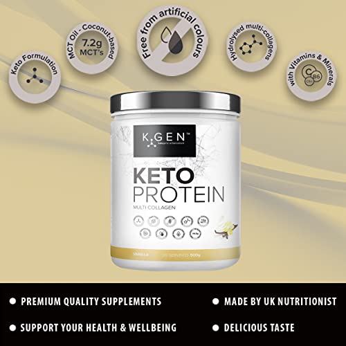 K-GEN Keto Collagen Shake Protein Powder Natural Vanilla Multi-Collagen Blend with Coconut MCT Oil, Vitamin C+B6, Stevia | UK Made for Diet, Fat Loss | Low Carb Zero Gluten & Sugar Free
