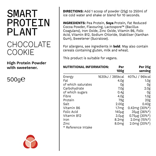 Phd Smart Plant, high Protein Vegan Shake, Ideal for Shakes, Baking and Deserts, Choc Cookie,500g