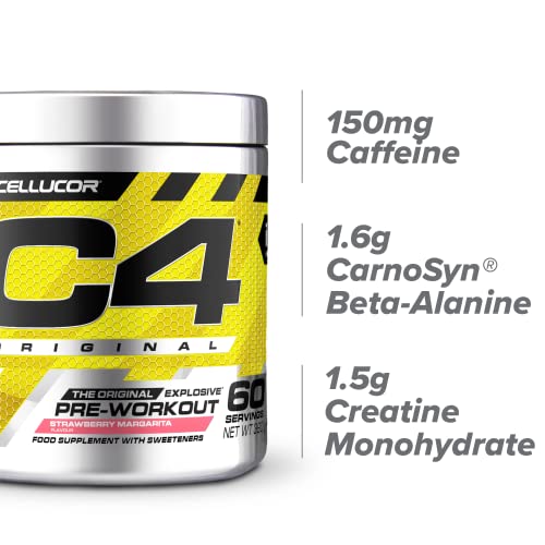 C4 Original Beta Alanine Sports Nutrition Bulk Pre Workout Powder for Men & Women | Best Pre-Workout Energy Drink Supplements | Creatine Monohydrate | Strawberry Margarita | 60 Servings
