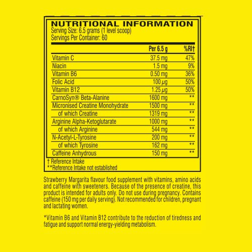 BOOSTS ENERGY AND ENDURANCE: The pre workout energy powder gives you that extra push to power through exercise and fatigue with 150mg caffeine, 1600mg CarnoSyn beta alanine, and 1500mg creatine monohydrate.
