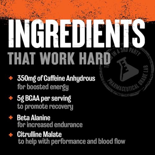 5g BCAA, 6g Citrulline Malate, 2g Beta Alanine, 1g L-Tyrosine, 350mg Caffeine. Combined for a powerful preworkout energy drink suplement. Each container contains 30 servings.