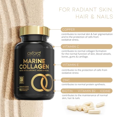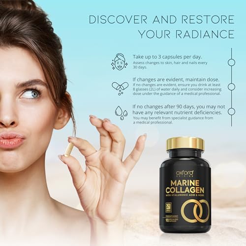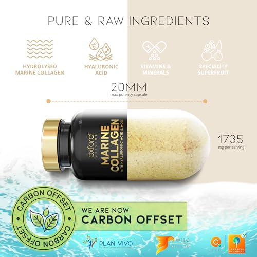 Advanced Marine Collagen Capsules | 1735mg Superfood & Vitamin boosted Complex for Glowing Hair, Skin & Nails | Marine Collagen Tablets for Women & Men | Premium Collagen Supplements Made in The UK