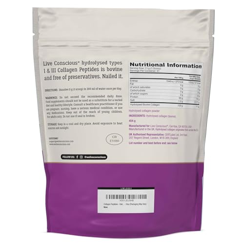 Premium Ingredients: For the best results, you need the best ingredients. Live Conscious uses hydrolysed collagen peptides from bovine sources across the EU.