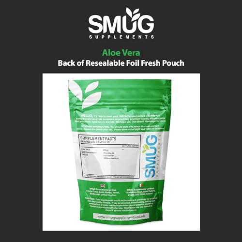 ✅ PURCHASE WITH CONFIDENCE – SMUG Supplements is a family run company based in North Devon. All of our tablets, capsules and powders are manufactured right here in the UK under high quality GMP standards and packaged with great care. Our Aloe Vera capsules are dispatched in a resealable pouch and flat letterbox friendly packaging, unlike bottled Aloe Vera capsules and tablets. We aim for 100% customer satisfaction! If you have any questions, please get in touch.