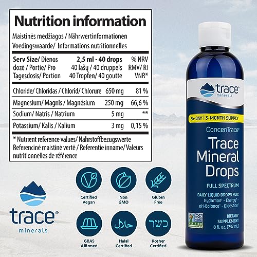ConcenTrace Mineral Drops | ConcenTrace Electrolyte Drops | pH Balanced Liquid Minerals for Energy, Digestion & Rehydration | 237ml by Trace Minerals