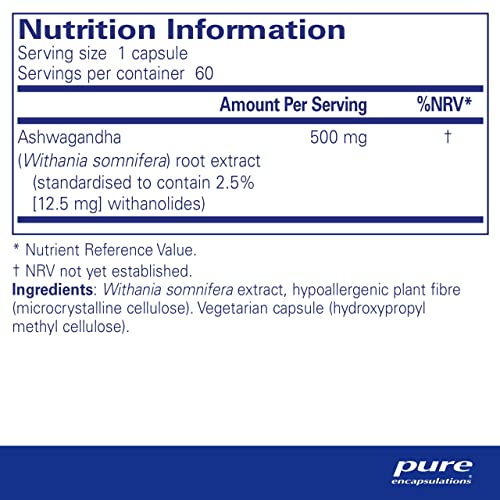 Pure Encapsulations – Ashwagandha High Potency Extract 500mg – Indian Ginseng/Winter Cherry Supplement to Support Cognitive and Joint Function – 60 Vegetarian Capsules