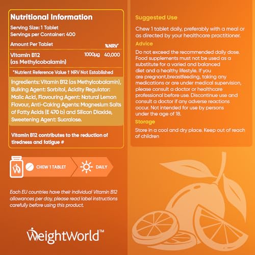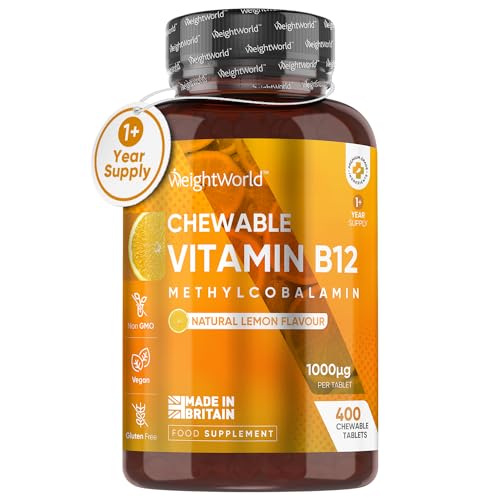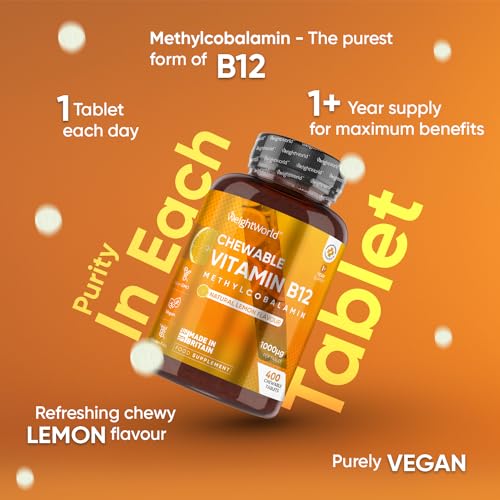 Vitamin B12 High Strength 1000mcg – 1+ Year Supply – 400 Chewable & Vegan Vitamin B12 Tablets – Sugar-Free Methylcobalamin – Vit B12 Supplement for Tiredness & Fatigue – Lemon Flavour – Made in The UK