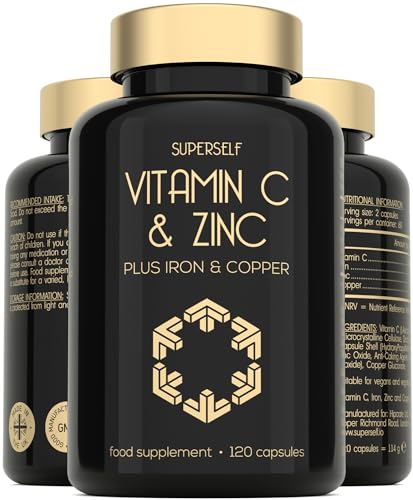 Vitamin C and Zinc Tablets – 1000mg VIT C Enhanced with Zinc, Iron, Copper High Strength – 120 Easy to Swallow Capsules – Vegan Immune System Complex Vitamin C Supplement with Superior Absorption