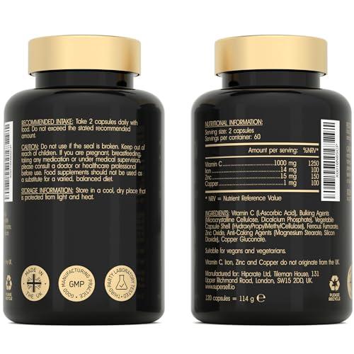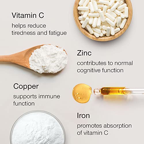 REDUCE FATIGUE, BOOST IMMUNE SYSTEM – Vitamin C, zinc, iron and copper are all essential vitamins and minerals. Vitamin C and iron contribute to the reduction in tiredness and fatigue, while iron and zinc contribute to normal cognitive function. All four contribute to the normal function of the immune system.
