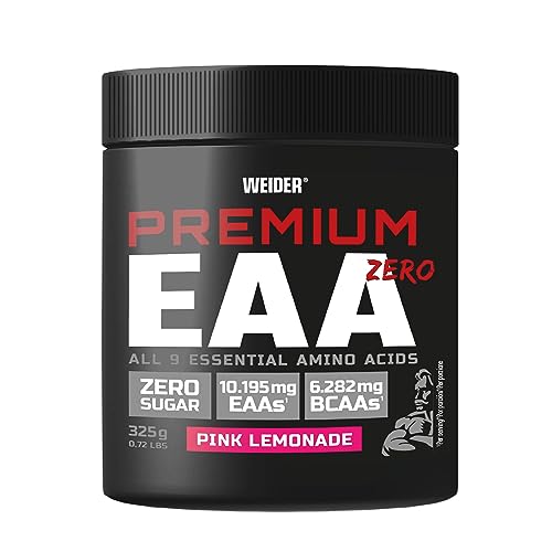 Weider Premium EAA Zero (325g) Pink Lemonade Flavour. All 9 Essential Amino Acids, with 10.195mg EAAs + 6.282mg BCAAs per Serving, Zero Sugar, No Fat, Vegan, No Artificial Colours, No Fillers